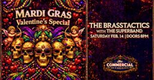 Celebrate Valentine’s Day with a Mardi Gras-style party bursting with sound, color, and energy. The Brasstactics and The Superband bring brass, funk, and party anthems together for a night that’s impossible to resist. Expect bold performances, nonstop dancing, and a grand finale that unites both bands on stage. Dress up, grab your beads, and join a crowd ready to celebrate love, music, and pure fun.